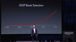 Le lancement du Kindle Fire HD a été l’occasion pour Jeff Bezos de promouvoir les services destinés aux auteurs. Avec la vente de ses tablettes à l’international, il va maintenant falloir séduire les auteurs du monde entier. Le patron d’Amazon s’y est employé lors de la conférence de presse. Il a notamment décrit le succès de Kindle Singles et de Kindle Direct Publishing (KDP).