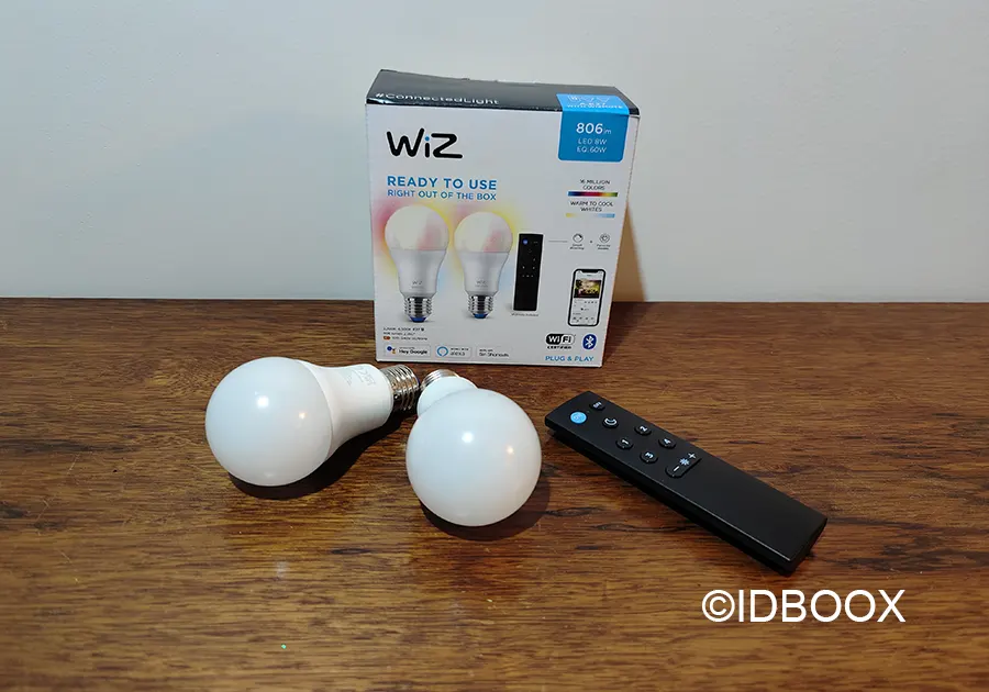 Ce pack contient deux ampoules LED couleur de 60W et une télécommande. Elles se commandent également avec Alexa, Google Assistant et Apple Homekit. Outre la facilité d’utilisation et leur petit prix, les ampoules Wiz ont un autre avantage.