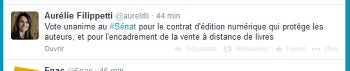 « Vote unanime au Sénat pour le contrat d’édition numérique qui protège les auteurs, et pour l’encadrement de la vente à distance des livres ». C’est par ce tweet qu’Aurélie Filippetti, ministre de la Culture et de la Communication a annoncé victorieuse le vote du parlement ce matin concernant les frais de port des livres.