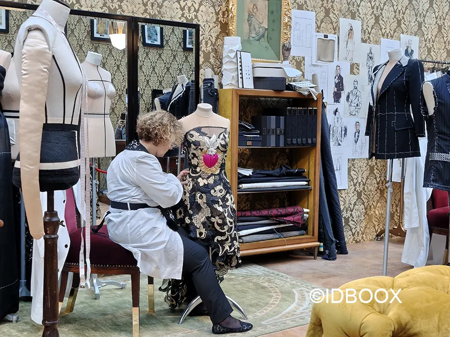 Le parcours nous transporte aussi dans la reconstitution des ateliers de la maison de mode. Là des couturières expertes en coupe et broderie travaillent en silence. Avec elles, on découvre, comprend et on vit de l’intérieur le processus de création.