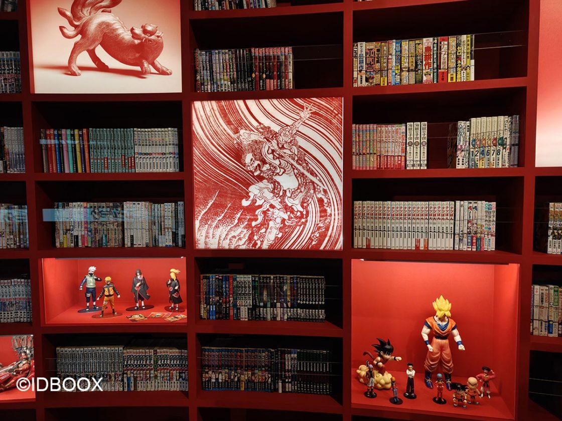 Rendez-vous ensuite au rez-de-jardin du musée. Le visiteur pénètre dans une immense bibliothèque pour débuter un autre voyage. L’exposition met en regard les oeuvres du musée avec les créateurs manga connus.