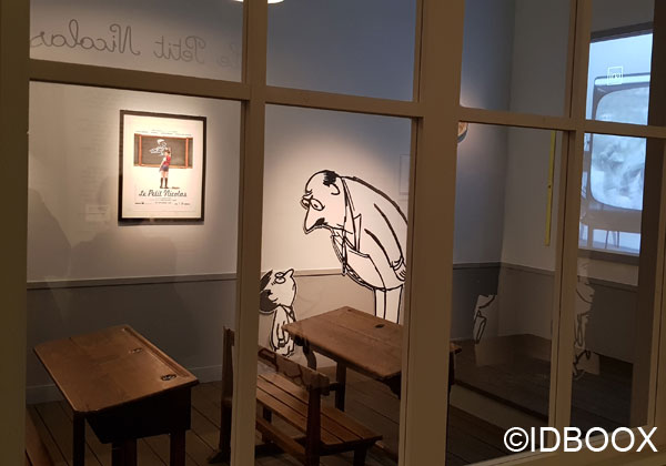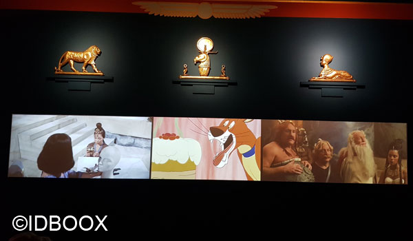 On tombe ensuite sur une salle de classe reconstituée avec Le Petit Nicolas qui nous accueille. On peut s’asseoir sur des bancs d’écoles et regarder un extrait de film. Un espace gigantesque est ensuite consacré à Astérix et Obélix avec de nombreux costumes des personnages. On pousse les portes du palais de Cléopâtre.