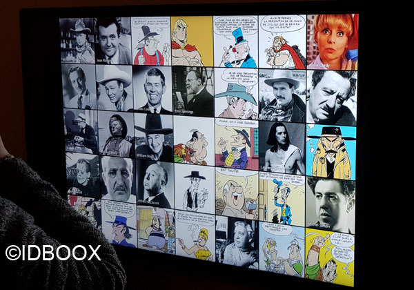 Toujours dans un esprit ludique, on a adoré l’écran tactile avec une quarantaine de visages d’acteurs de cinéma. C’est une sorte de jeu mystère. Un clic révèle leur alter ego dans la BD.