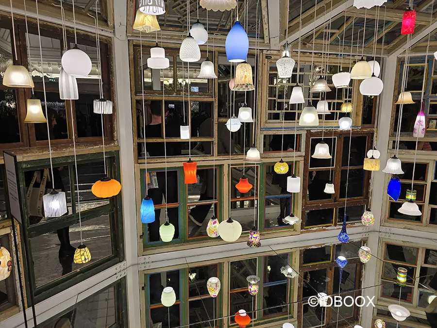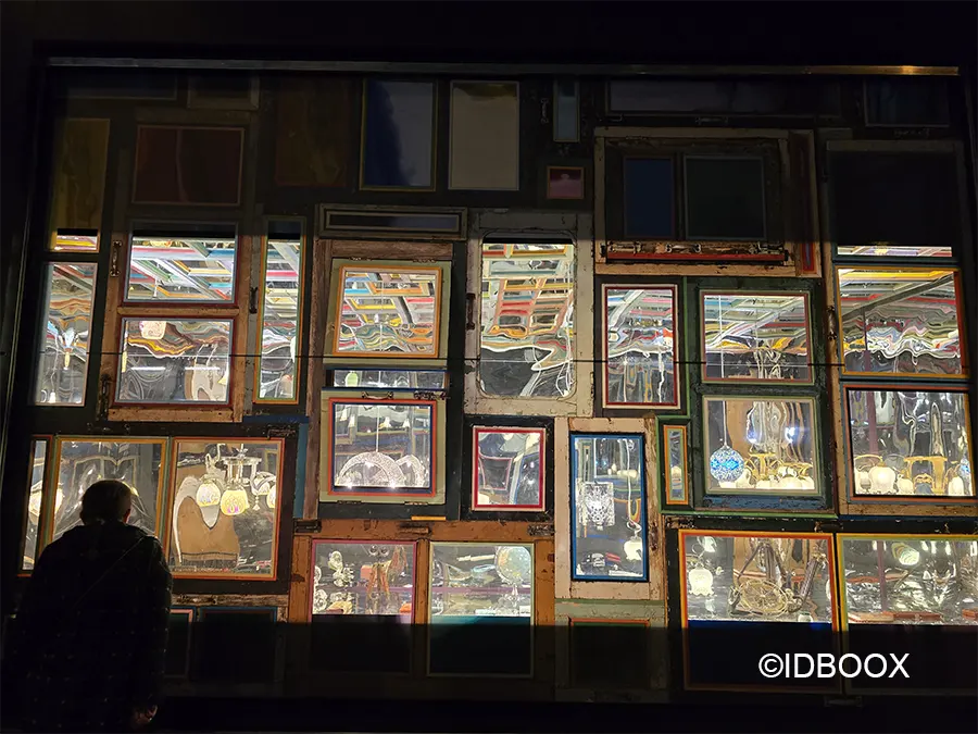 L’expérience atteint son apogée au deuxième étage avec une galerie des glaces d’un nouveau genre. Entre portes et fenêtres recyclées, l’artiste édifie une maison lumineuse habitée par des centaines de lampes chargées d’histoire.