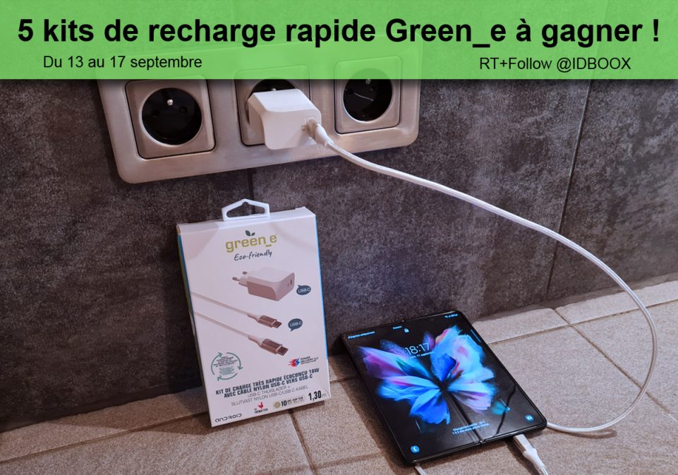 Du 13 au 17 septembre, tentez de gagner l’un des 5 kit de chargement écoconçus très rapide 18 W USB-C vers USB-C Green_e, pour les appareils Android.