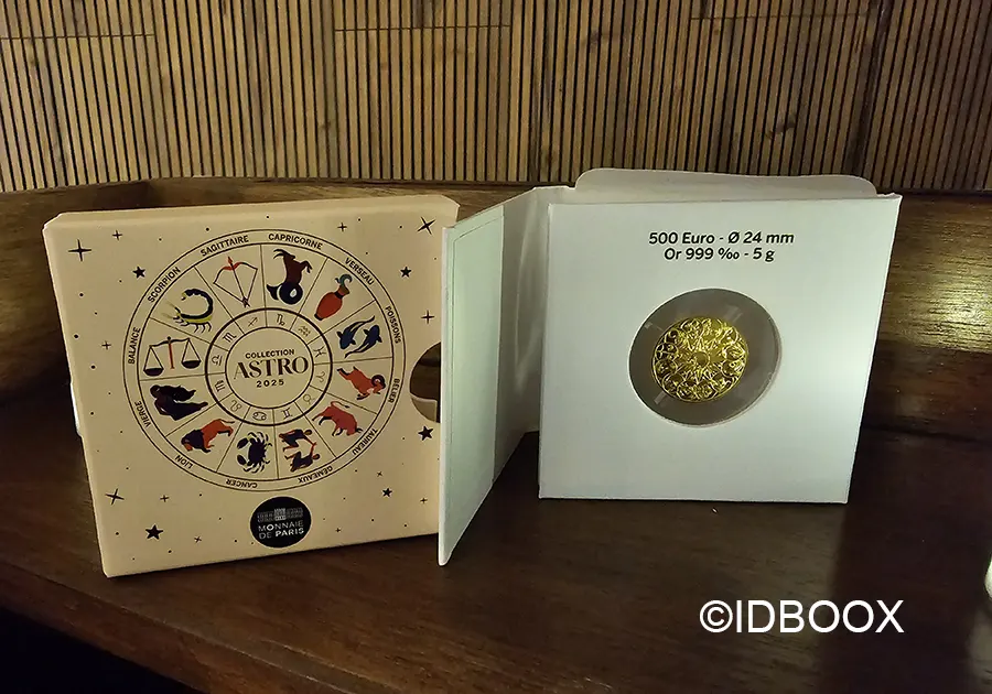 Pour l’occasion, l’institution frappe également, une pièce exceptionnelle de 500 euros en or pur. Baptisée “La Roue Astrologique”. Cette pièce fait partie de la Collection Astro et est une véritable œuvre d’art numismatique.