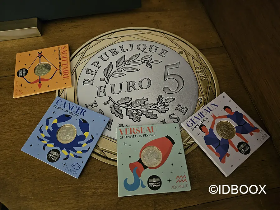 La Monnaie de Paris exploite cette fascination en créant des pièces qui représentent chaque signe astrologique. Chaque pièce de 5 euros est gravée avec des détails minutieux, reflétant les traits de personnalité associés à chaque signe.(Prix 8 euros)