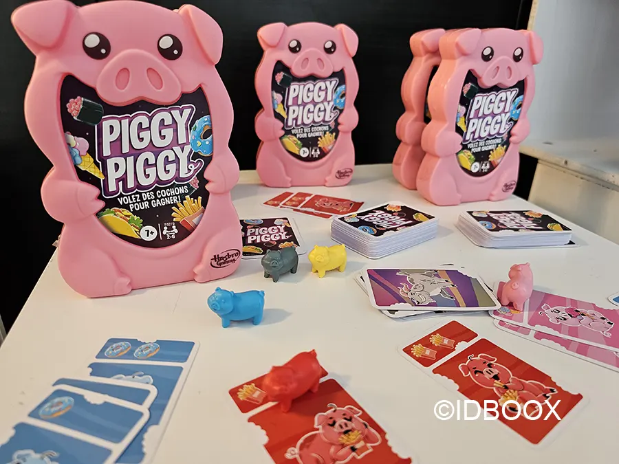 Piggy Piggy est un autre jeu de voyage mais cette fois vous jouez avec des petits cochons. Il respecte les mêmes principes. Les règles sont simples, les parties sont rapides et il procure un maximum de fun ! C’est un peu un jeu des 7 familles revisité.