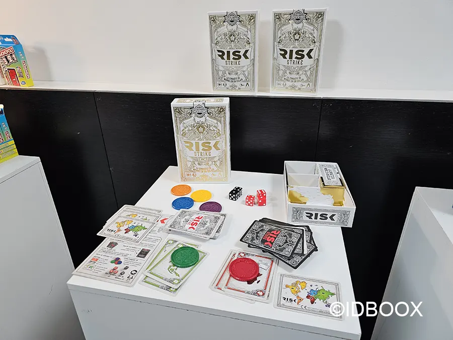 Risk Strike est une version simplifiée mais tout aussi palpitante que le mythique jeu Risk Classique. Vous repartez à la conquête du monde mais en mode voyage et transportable. Il n’y a plus de plateau. Le jeu se compose de cartes, de jetons et de dés. C’est un jeu simple mais hautement stratégique.