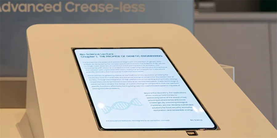 Samsung Display a profité du CES 2026 pour faire plusieurs annonces retentissantes. Outre une gigantesque TV Micro RGB de 130 pouces, la firme coréenne a également présenté un écran pliable inédit.
