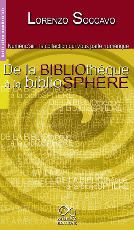 La chose n’est pas encore fréquente et mérite d’être mentionnée. Au début de l’année, Lorenzo Soccavo publiait chez NumeriKlivres « De la bibliothèque à la Bibliosphère » un livre numérique mettant en exergue les enjeux de la digitalisation du livre sur l’univers des bibliothèques, en abordant les nouvelles pratiques de lecture, de mise à disposition et de circulation des textes auprès des usagers. Fort de son succès numérique, Morey Editions a décidé de publier cet ouvrage en papier.