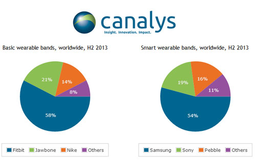 D’après Canalys, 1,6 million de montres connectées et de bracelets ont trouvé acquéreurs pendant cette période. C’est la Galaxy Gear de Samsung qui arriverait en tête avec 54% de PDM, suivie de la SmartWatch de Sony avec 19% et la Pebble avec 16%.
