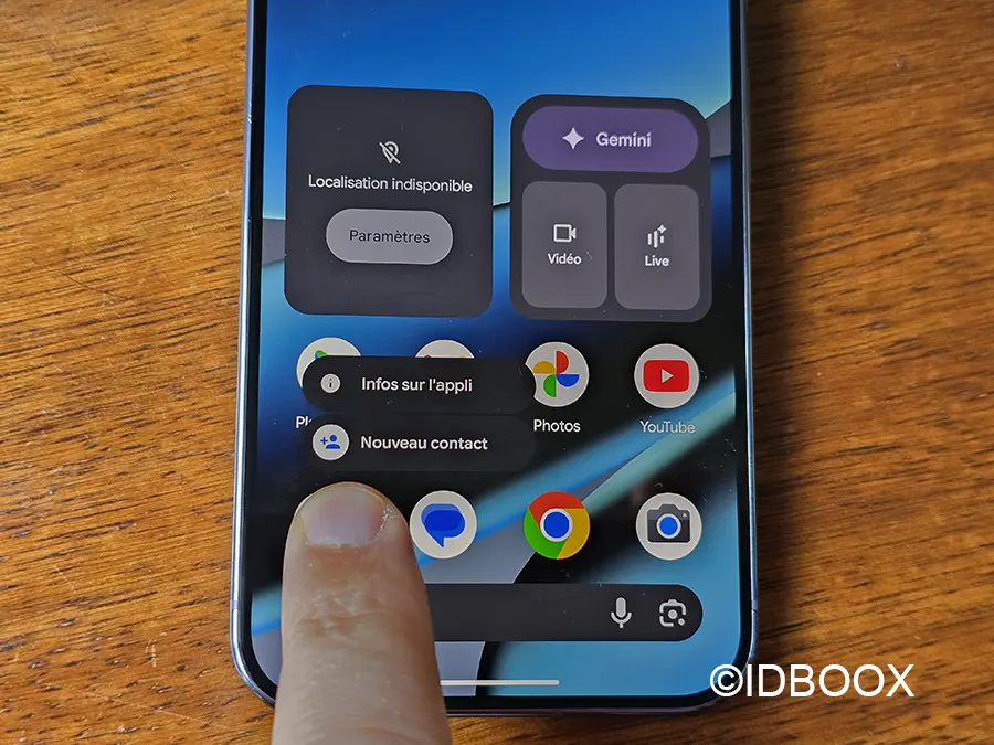 - Pressez longuement sur l’icône téléphone pour faire apparaître un pop-up.