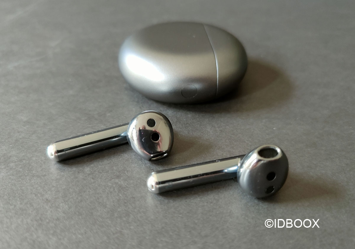 Huawei conserve un format bouton. Ils ont comme particularité de ne pas posséder d’embout en silicone qui pénètre dans le conduit auditif. Ca les rend très agréables à porter sur la durée d’autant plus qu’ils sont très légers. Ils pèsent seulement 4,1g chacun.