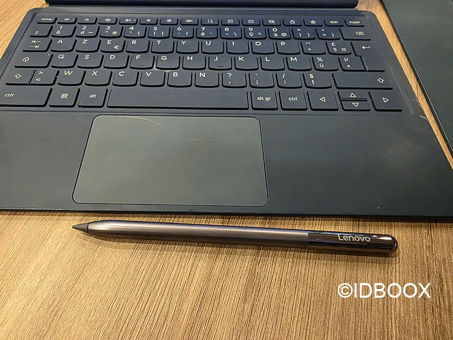 La Lenovo Yoga Tab Plus est livrée avec un clavier, une protection arrière et surtout un stylet. Celui-ci est très particulier.