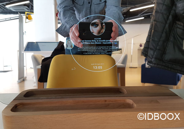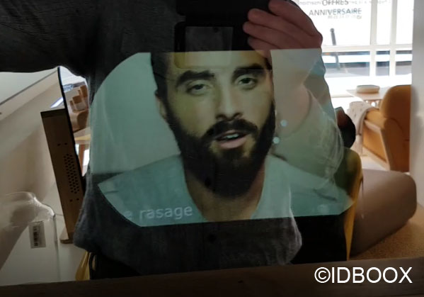 La magie opère grâce à un écran placé derrière la vitre. On n’est pas devant une TV Samsung QLED mais la qualité est correcte.