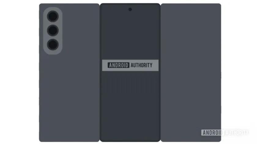 Peu d’éléments ont pour le moment échappé à la vigilance de Samsung mais un schéma nous donne un aperçu de son design. Contrairement au Huawei Mate XT, le Galaxy Z TriFold se replie en prenant la forme d’un G.