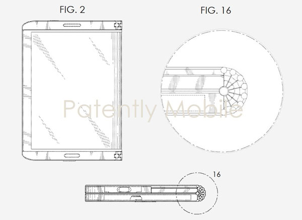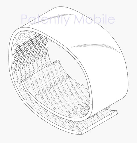 Le dernier brevet est intitulé « Wearable Electronic Device ». Compte tenu de sa forme, cet écran flexible pourrait être utilisé sur un bracelet connecté.