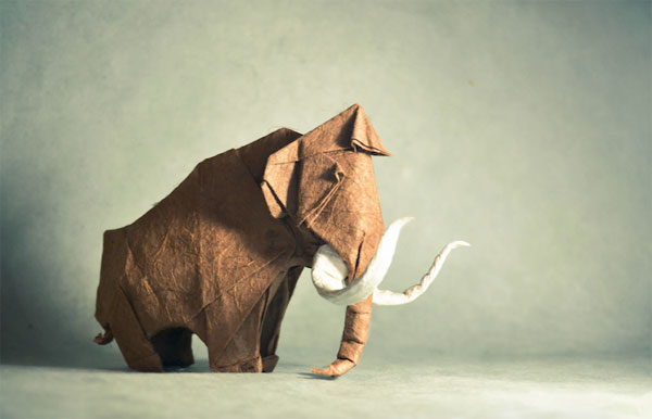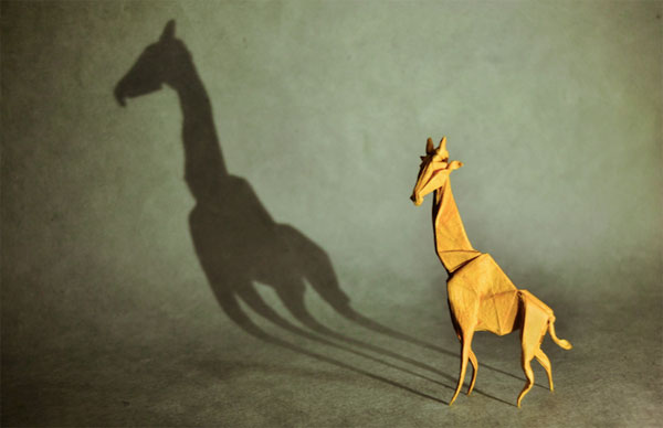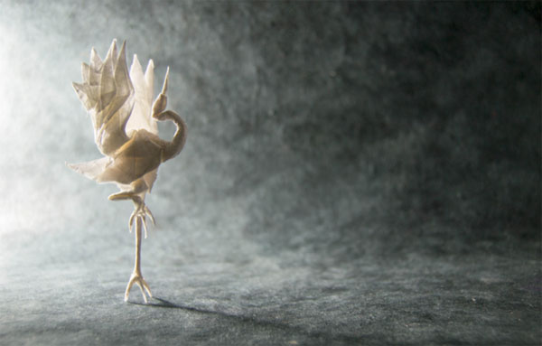 Il transforme de simples feuilles de papier colorées en sculptures complexes. On ne parle pas de cocottes ou de petits bateaux. Il est capable de confectionner des animaux complexes et expressifs. Chat, éléphant, rhinocéros, grue, aigle, ils ont tous une position un mouvement qui les rend presque vivants.