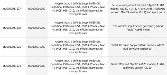 Apple a fourni une liste de numéros de série à l’EEC (Eurasian Economic Commision) pour une autorisation de mise sur le marché en Russie de plusieurs appareils.
