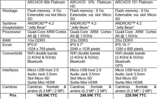 On notera qu’Archos a délaissé pour le moment le format 7 pouces. Le secteur est sans doute devenu trop concurrentiel et monopolisé par Amazon et Google. La 80b Platinum, la 97b Platinum HD et la 101 Platinum font sans doute partie de la nouvelle stratégie annoncée par le fabricant français début août destiné à le remettre à flot après une année difficile.