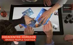 Lenovo a pensé l’Idea Center Horizon comme un appareil multi-fonctions. Il possède toutes les fonctionnalités d’un ordinateur sous Windows 8 mais peut également être utilisé à l’horizontal pour se transformer en table tactile. L’écran est  multi-touch est peut être manipulé en même temps par plusieurs personnes.