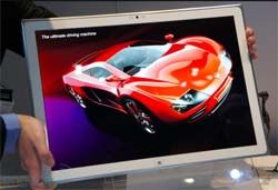 L’écran Retina de l’iPad (2 048 x 1 536 pixels) et celui de la Nexus 10 (2 560 x 1 600 pixels) sont dépassés. Selon les journalistes présents lors de la démonstration, le rendu est équivalent à du réalisme photo. Et pour ne rien gâcher, la tablette est extrêmement fine.