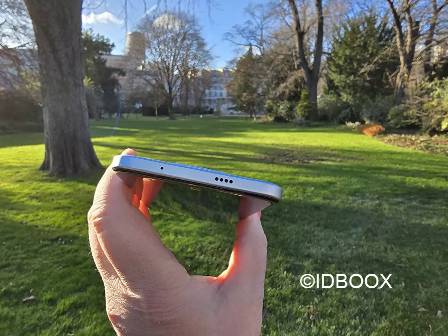 Contrairement au Redmi Note 15 Pro, sa coque arrière est en fibre de verre mais cela n’allège pas son poids. Le Redmi Note 15 Pro+ n’est pas non plus ce qu’on peut appeler un poids plume. On ressent rapidement ses 207 g dans le creux de la main.