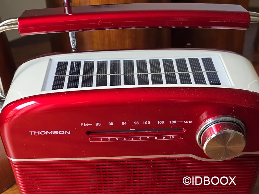 Mais ce que j’ai préféré, c’est le petit panneau solaire situé au dessus de la radio. Il assure une autonomie impressionnante. Vous placez la radio près d’une source de lumière naturelle, (devant une fenêtre ou en extérieur) et grâce à lui, la radio ne tombe pas en rade !