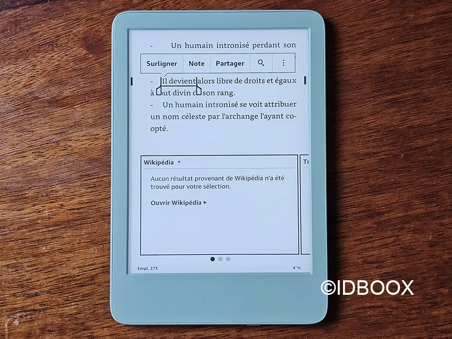 On retrouve bien entendu toutes les fonctions qui aident à la lecture : police, surlignage, accès au dictionnaire etc.