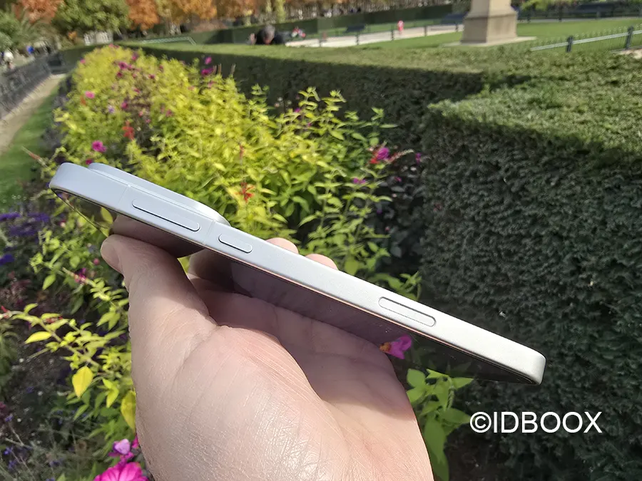 Le côté droit du smartphone abrite le bouton qui sert de déclencheur pour l’appareil photo et le zoom.