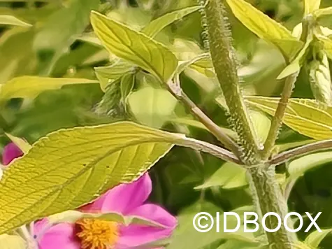 Sur la photo ci-dessous, vous pouvez apercevoir les nervures des feuilles et les trichomes de la tige des fleurs.