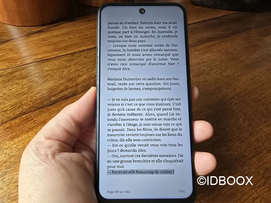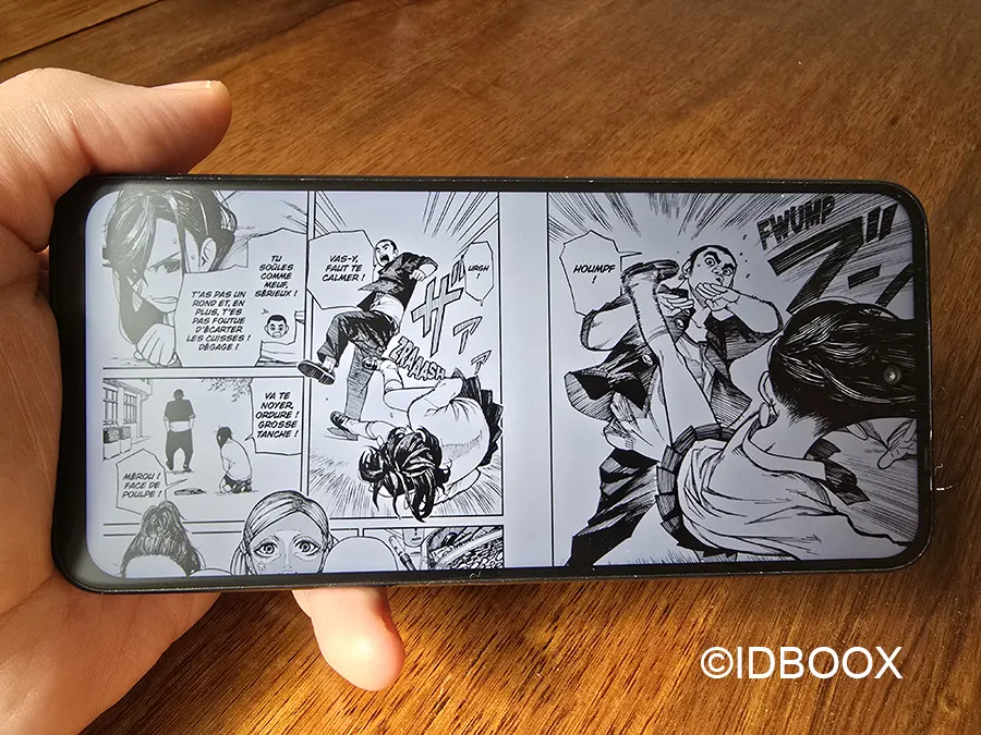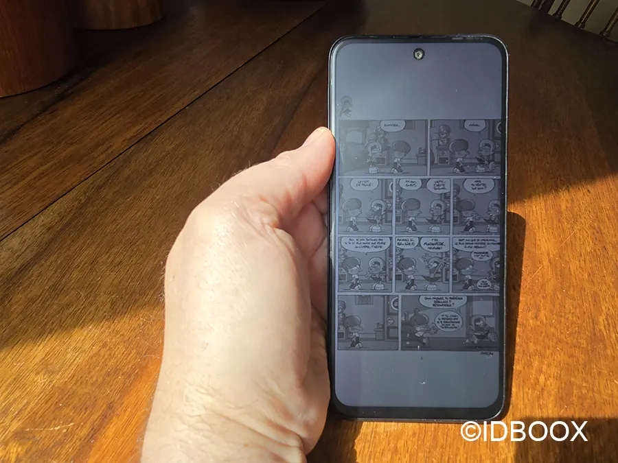 Le premier reproduit des couleurs avec la sensation du papier. Les teintes sont un peu plus fades qu’avec le mode classique et la luminosité est moins élevée. C’est parfait pour lire des BD. Les pages s’affichent rapidement, sans aucun temps de latence comme on peut constater sur certaines liseuses.